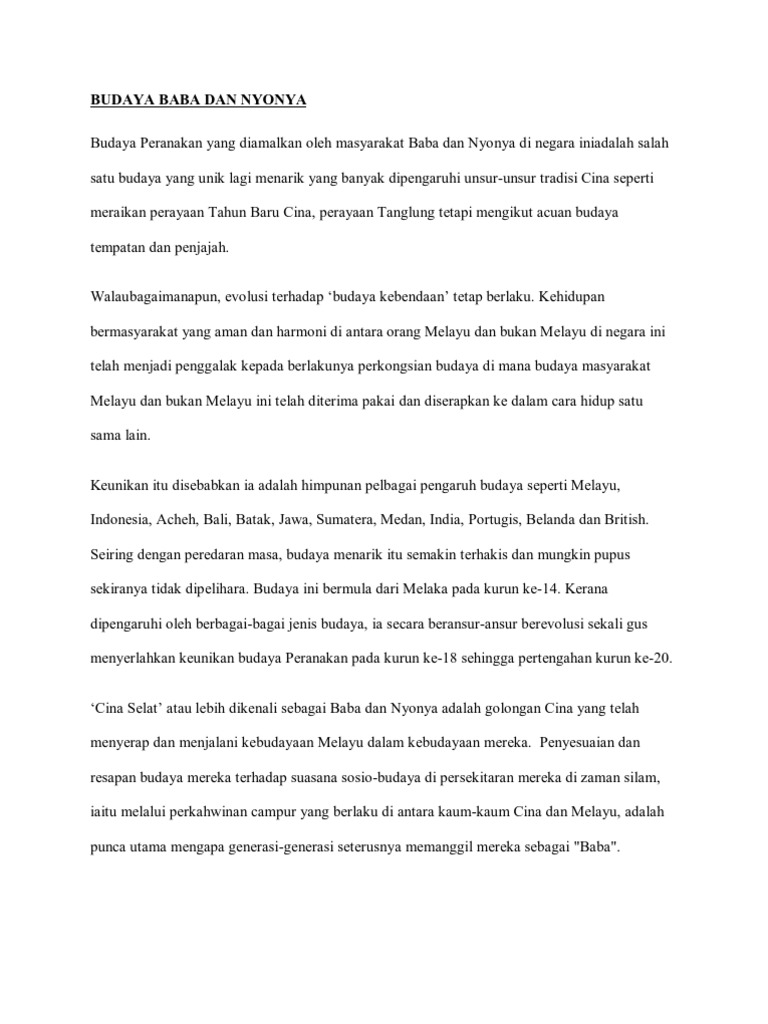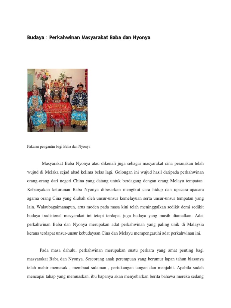 Related : Budaya Baba Nyonya - Masyarakat baba dan nyonya sedikit sebanyak telah mewarisi budaya masyarakatmelayu khususnya..