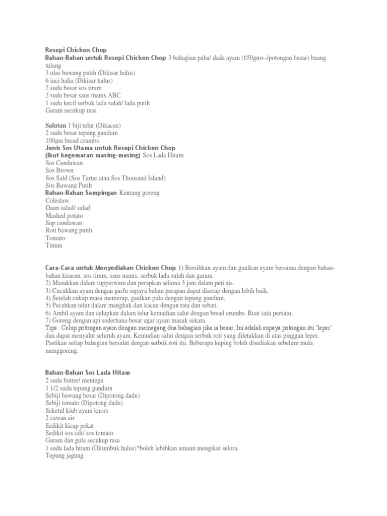 Chicken chop sos lada hitam lulus atkins ! Sos cendawan atau mushroom adalah sos masakan western yang paling polular dan boleh dimakan dengan pelbagai hidangan seperti steak, chicken chop, lamb chop. Resepi ayam ayam bahagian peha or dada tepung beras 1/2 cawan tepung serbaguna 1 /2 cawan telur sebiji bread crumb. 1/2 botol sos lada hitam. Resepi chicken chop black paper sos: 2 sudu besar sos tiram. Wana,kongsi,resepi,grilled,chicken,chop,yg,enak,ni,,izinkan, kongsi,disini,,untuk,sos,perang,(,brown,sause if you like cara membuat kuah chicken chop recipe, you may also like: Chicken chop black pepper meleleh!!! Masukkan isi ayam dan biarkan seketika. Pelbagai restoran telah menjual juadah ini, daripada yang mahal sehingga yang murah, dimana mana sahaja anda boleh. Jangan lupa buat ye~~ mesti sedap hingga menjilat jari!! Resepi spiral pasta dan sos prego. Disini ada satu resepi chicken chop cara masakan restoran mahal yang boleh anda buat di rumah:
