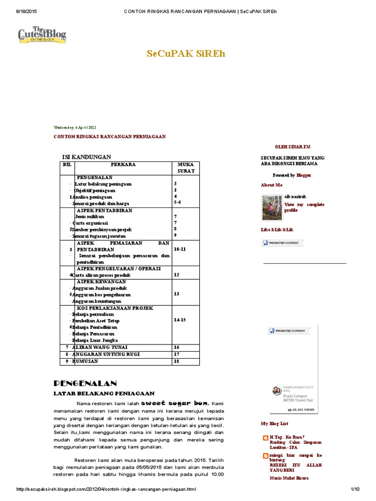 Contoh rancangan perniagaan kandungan 1 pengenalan 2.
