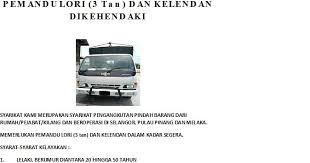 Pemandu lesen baru demand tinggi sangat. Experience to drive 3 tan lorry. Pemandu lori, truck driver, pemndu lori and more on indeed.com. Lori 3 tan bonded untuk disewa. Pemandu lori, jawatan kosong, pemandu lori 罗里司机 and more on indeed.com.